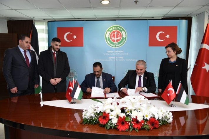 Palestinian Attorney General Dr. Ahmed Barrak, accompanied by a delegation, paid an official visit to Turkey on 15-17 February 2018 upon the official invitation of the General Prosecutor of the Supreme Court of Appeal Mr. Mehmet AKARCA. During the visit, a Memorandum of Understanding was signed between the General Prosecution Offices of both Countries and a presentation was made regarding the structure, duties and powers of the General Prosecution Office of the Supreme Court of Appeal and mutual information and opinions were exchanged.