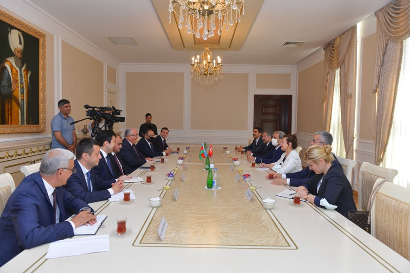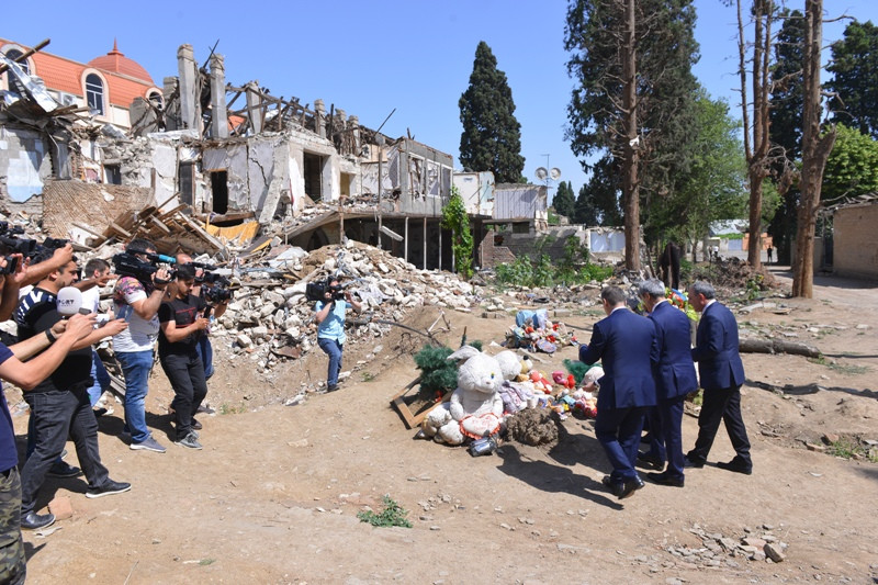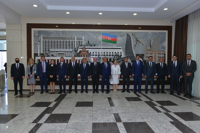 During the visit, Mr. Şahin and his accompanying delegation were received by Mr. İlham Aliyev, President of the Republic of Azerbaijan. Mr. Şahin and his delegation had meetings with Mr. Ramiz Rzayev, the President of the Supreme Court of Appeal and Mr. Fikrat Mammadov, Minister of Justice of Azerbaijan. Within the scope of the Program, the delegation visited the Ganja City Prosecutor’s Office and it was seen that the places where 26 civilians died and 142 people were injured by the ballistic missile attacks carried out four times in October 2020 by the Armenians during the 44-day Nagorno-Karabakh War under the claim that these places were military facilities, are civilian residential areas in Ganja city center.