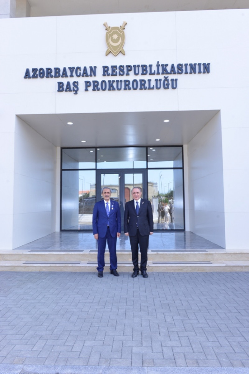 During the meetings held within the framework of the visit, further strengthening of the existing legal cooperation between two brother countries, which are grounded on the notion “One Nation Two States”, was evaluated and mutual opinions were exchanged. A new Memorandum of Understanding was signed on 31 May 2021 to replace the Memorandum of Understanding signed on 16 March 2015 in order to strengthen cooperation and share experiences between the General Prosecutor's Office of the Republic of Azerbaijan and the General Prosecution Office of the Supreme Court of Appeal. Mr. Şahin was awarded with a “medal” by Mr. Kamran Aliyev, General Prosecutor of the Republic of Azerbaijan for the strong cooperation and friendly relations with General Prosecutor’s Office of the Republic of Azerbaijan.