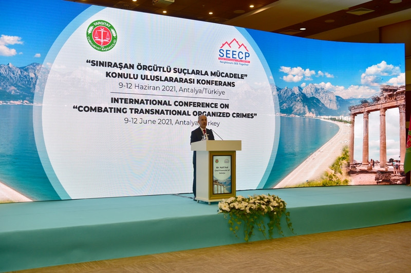International Conference on "Combating Transnational Organized Crimes" was held between 9-12 June 2021 in Antalya within the scope of our country’s 2020-2021 Chairmanship Term for the Southeast European Cooperation Process. Senior level delegations consisting of Mr. Olsian Cela, General Prosecutor of the Republic of Albania, Mrs. Pranvera Pustina, Prosecutor, Director of Cabinet at the General Prosecutor’s Office of the Republic of Albania, Mr. Arben Kraja, Head of Special Prosecutors Office against Corruption and Organized Crime, Ms. Gordana Tadić, Chief Prosecutor of Bosnia-Herzegovina, Mr. Ćazim Hasanspahić, Prosecutor, Head of Terrorism Section at the Prosecutor's Office of Bosnia-Herzegovina, Ms. Aleksandra Golijanin, Senior Advisor of the Chief Prosecutor, Mr. Borislav Bobi Sarafov, Deputy Prosecutor General of Bulgaria, Mr. Tsvetomir Tsvetkov Yosifov, Head of International Department at Supreme Cassation Prosecutor`s Office of Bulgaria, Mr. Cladco Alexandru, Prosecutor at the General Prosecutor`s Office of the Republic of Moldova, Mr. Raileanu Dumitru, Prosecutor at the Prosecution Office on Fighting Organized Crime and Special Causes, Ms. Pâțu Oana Daniela, Acting Chief Prosecutor at the Directorate for Investigating Organized Crime and Terrorism of the Prosecutor’s Office Attached to the High Court of Cassation and Justice of Romania, Ms. Spinu Nadina-Magdalena, Chief Prosecutor of the Service of International Judicial Cooperation, International Relations and Programs, Mr. Rareș - Petru Stan, Prosecutor at the Directorate for Investigating Organized Crime and Terrorism attended the Conference.