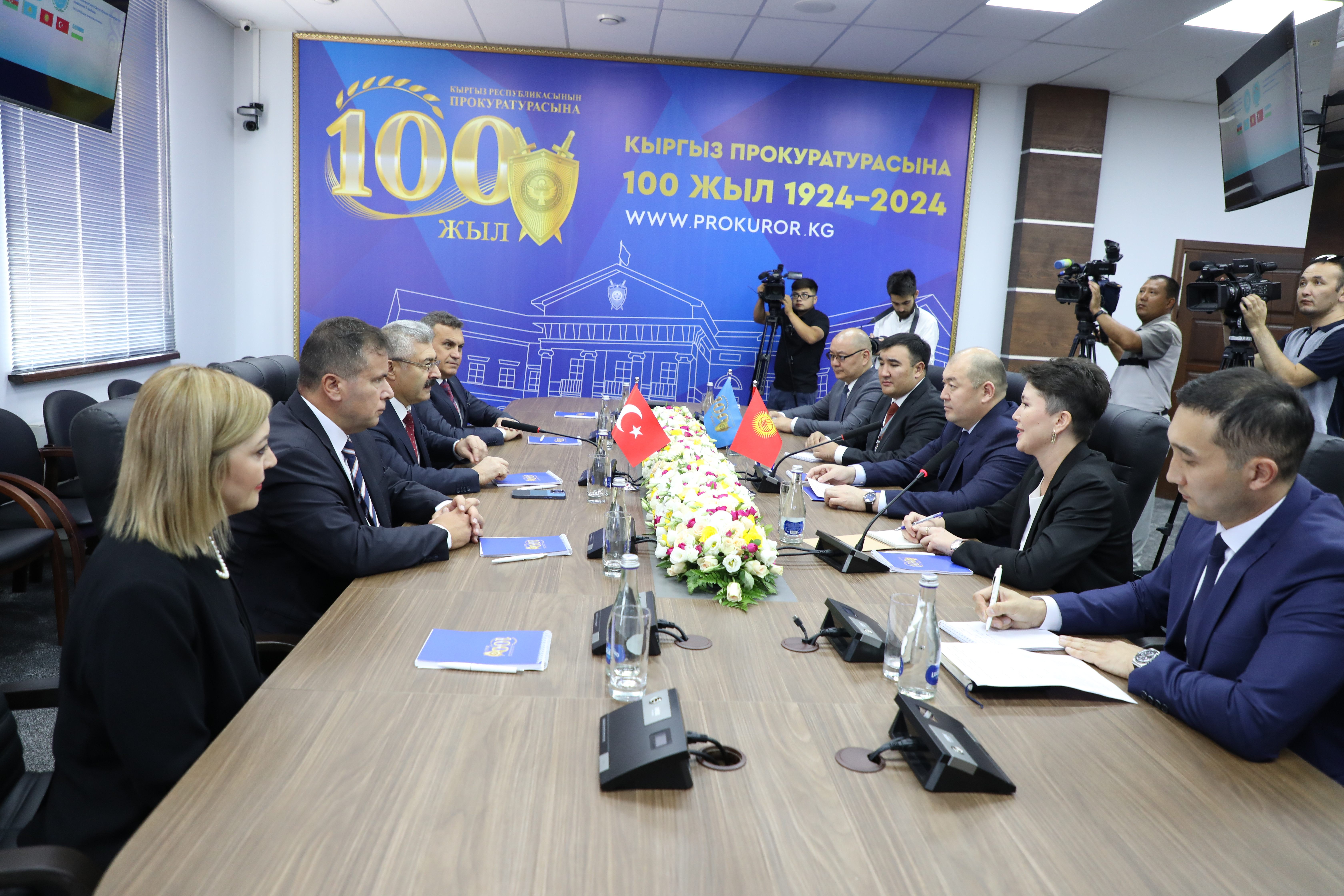 Prior to the official meeting, Mr. Muhsin Şentürk, General Prosecutor of the Supreme Court of Appeal, visited Mr. Maksat Asanaliev, Prosecutor General of the Kyrgyz Republic at the Prosecutor General's Office of the Kyrgyz Republic for bilateral meetings and held bilateral meetings with Mr. Kamran Aliyev, Prosecutor General of Azerbaijan, Mr. Igor V. Krasnov, Prosecutor General of the Russian Federation, Mr. Berik Asylov, Prosecutor General of the Republic of Kazakhstan and Ambassador Mr. Kubanchbek Ömüraliyev, Secretary General of the Organization of Turkic States. In addition, Mr. Şentürk and the accompanying delegation visited Mr. Ahmet Sadık Doğan, Ambassador of the Republic of Turkey in Bishkek.